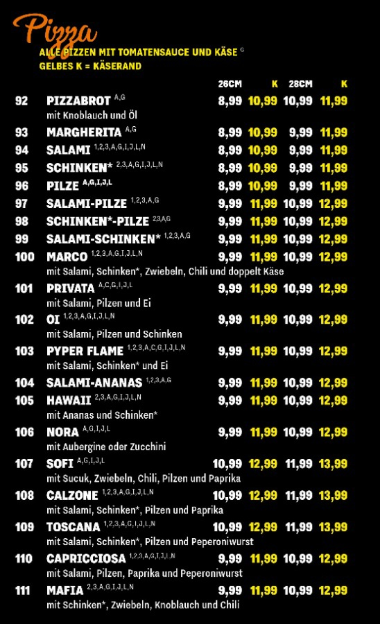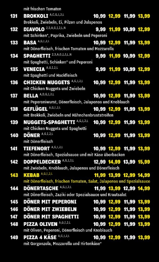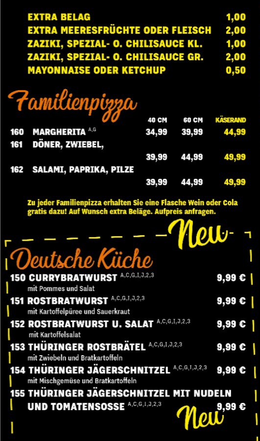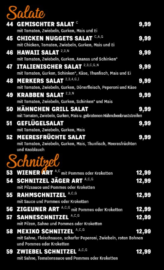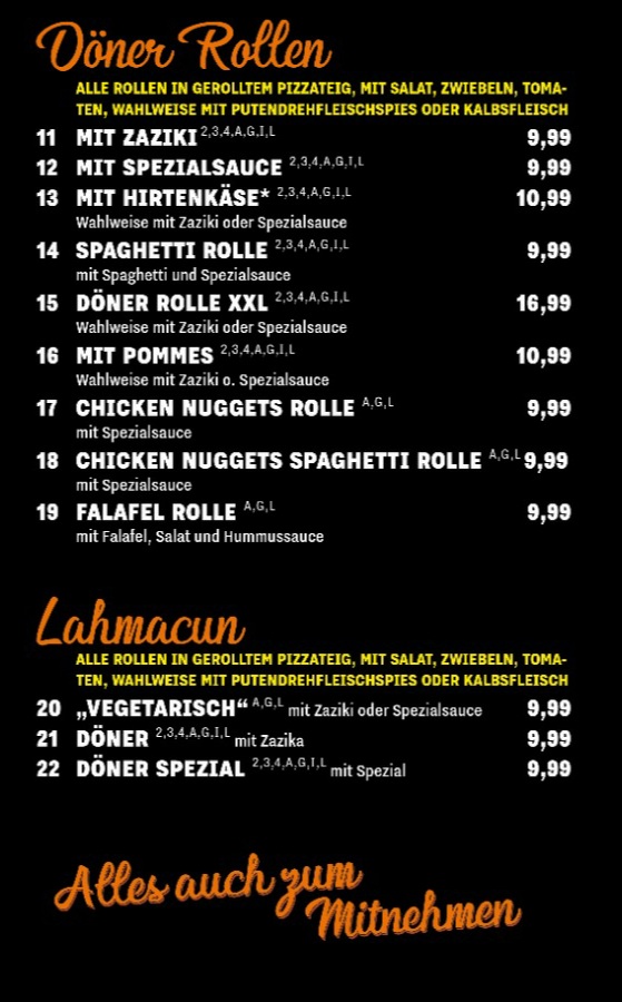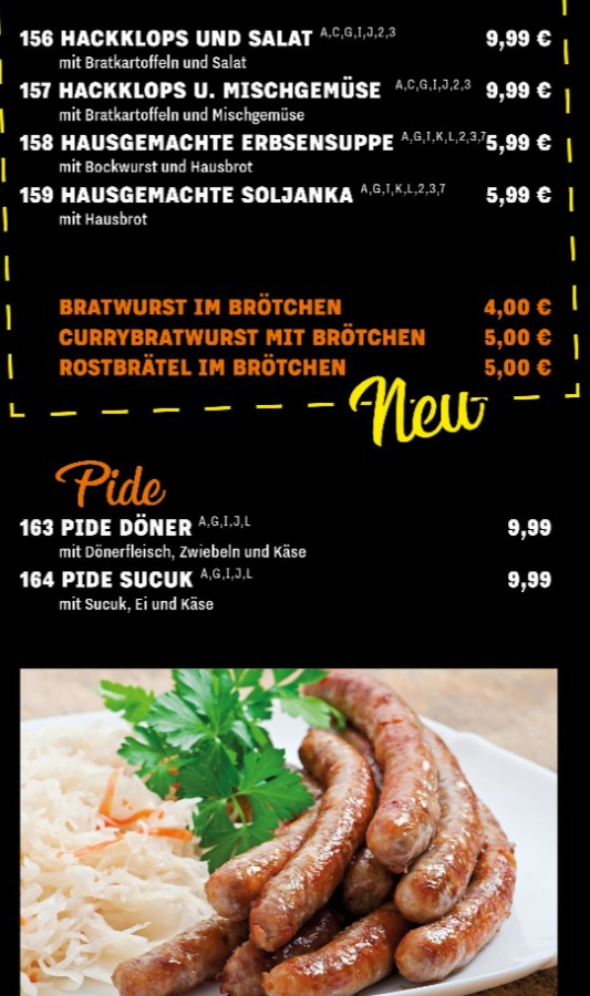 Merker’s Döner offers a diverse menu that beautifully blends Turkish and German flavors. One of the standout dishes is the Pizza Dönertasche, a unique take on a classic pizza wrapped in a pita-style dough, creating a satisfying balance of crispy and soft textures. For a lighter option, the Döner Salat is a refreshing choice, featuring a generous portion of tender döner meat served over a bed of crisp, fresh salad. If you're in the mood for something more indulgent, the Pizza Tiefenort combines rich pizza flavors with a Döner twist, making it a delightful choice for those seeking a hearty meal. Whether you’re craving a flavorful wrap, a fresh salad, or a pizza with a twist, Merker’s Döner provides something for every palate, all served with warm hospitality in a cozy setting.